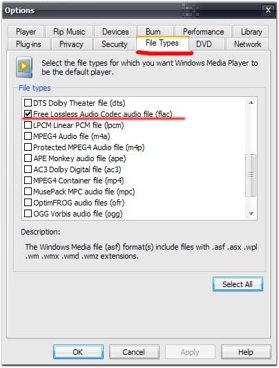 3. จากนั้น สุดท้ายเข้าไปตั้งค่าซักเล็กน้อย ให้ Windows Media Player เล่น File FLAC ได้เสมอ