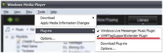 2. จากนั้นเข้ามาเปิดดู โปรแกรม Windows Media Player 11 กดที่ Tab Tools >>> Plug-ins