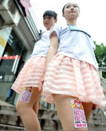 สำนักข่าวต่างประเทศรายงานเมื่อวันที่ 28 พ.ค.ว่า บริษัทโฆษณาจีนรายหนึ่งได้ผุดไอเดียเช่าขาอ่อนนักศึกษาสาวจีน เป็นพื้นที่โฆษณา ขณะที่ไอเดียดังกล่าวถือว่าประสบความสำเร็จ หลังมีนักศึกษาสาวหลายร้อยได้รับข้อเสนอให้เช่า"ขาอ่อน"เพื่อเป็นพื้นที่โฆษณาให้แก่บริษัทดังกล่าว