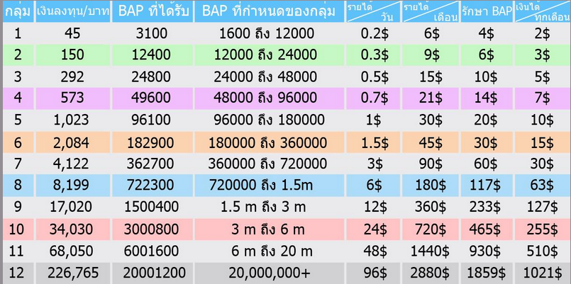 นี่เป็นรายการแผนการลงทุนนะ (ที่จริงไม่ต้องลงเงินก็ได้แต่อาจได้ช้าหน่อย) การทำงานนี้เหมือนเราเอาเงินฝากธนาคารแหละครับ เราจะลงเงินไปชื้้อ BAP แต่เงินก็ไม่ได้หายไปไหน ทุกๆ 1$ จะได้กลับมา 1.55$ (ช้าเร็วไม่แน่นอน) แต่หลายคนอาจสงสัยว่าเว็บมันไม่ขาดทุนหรอ ไม่หรอก มันมีเกมส์อยู่ครับไว้ล่อผีพนัน เจ้าของเว็บผมดูจากแรงค์กิ้งแล้วได้วันละตั้ง 500$+ แหนะ