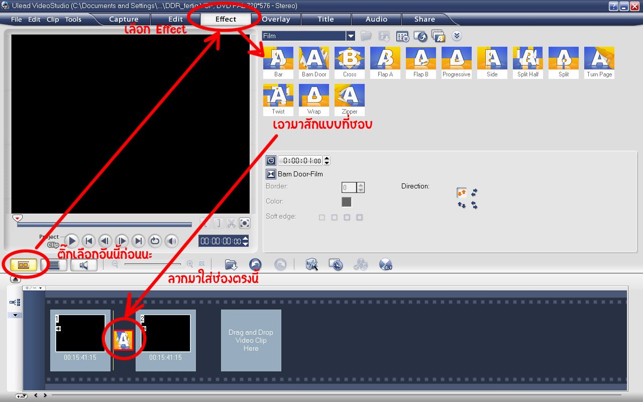 13. หลังจากตรวจดูความเรียบร้อยเสร็จแล้ว ก็ใส่ Effect ตามใจชอบค่ะ (สำหรับคนที่ตัดตอนออกมา) อย่างตอนเปลี่ยนฉากจะใส่ Effect เปิดหน้าหนังสือก็ใส่ได้ตามใจชอบ แถมง่ายแสนง่ายเลยค่ะ
