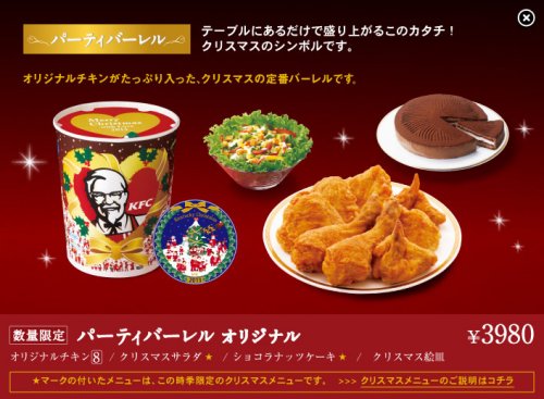 ถึงแม้ว่าไก่ทอดผู้พันจะไม่ใช่ไก่งวงอบเป็นตัวๆ ก็ตาม แต่การตลาดของ KFC ในครั้งนี้มีจุดมุ่งหมายก็คือทำให้ไก่ทอดนั้นเป็นตัวเลือกแทนไก่งวงที่หาไม่ได้ในญี่ปุ่นสมัยนั้น ยิ่งรวมกับความยอดนิยมเป็นอย่างมากของ KFC หลังจากที่เปิดสาขาแรกที่จังหวัดนาโกย่าเมื่อปี 1970 จึงทำให้แคมเปญนี้ประสบความสำเร็จอย่างมาก หลังจากนั้นก็ได้มีการจัดเมนูเป็นเซ็ตชื่อว่า Party Barrel (パーティーバーレル) ซึ่งจะมีไก่ทอด สลัด แล้วก็เค้ก ทำให้ได้รับความนิยมจนกลายมาเป็นธรรมเนียมปฎิบัติของชาวญี่ปุ่นจนถึงปัจจุบันไม่ว่าจะเป็นคริสเตียนหรือศาสนาอื่นนั่นเอง