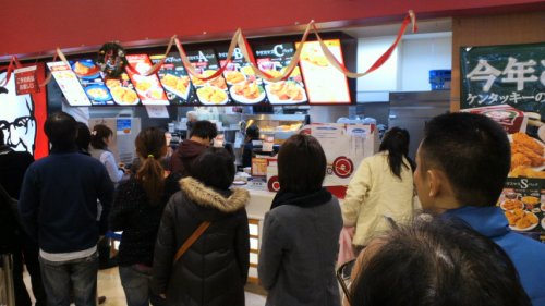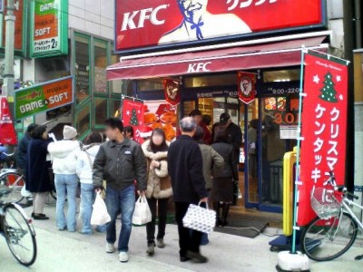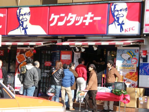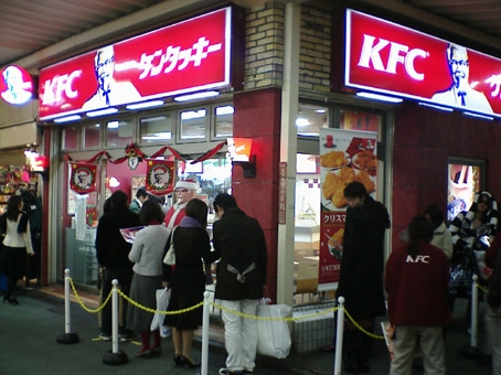 ย้อนกลับไปเมื่อปี ค.ศ. 1974 ได้มีกลุ่มชาวต่างชาติอยากจะเฉลิมฉลองวันคริสต์มาส ซึ่งตามธรรมเนียมชาวตะวันตกนั้นนิยมรับประทานไก่งวงกัน แต่ทว่าในสมัยนั้นประเทศญี่ปุ่นไม่มีไก่งวงจำหน่าย ทาง KFC แลเห็นโอกาสนี้จึงได้ออกแคมเปญการตลาดที่มีชื่อว่า Kentucky for Christmas (ケンタッキーのクリスマス) ทั้งๆ ที่ในสมัยนั้นชาวต่างชาติและชาวญี่ปุ่นที่เป็นคริสเตียนมีจำนวนน้อยมากๆ ขนาดผลสำรวจเมื่อปี 2010 ที่ผ่านมายังพบว่าจำนวนคริสเตียนในประเทศญี่ปุ่นมีเพียง 1% เท่านั้น