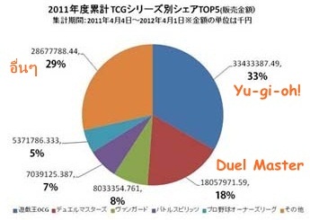 1. Yu-Gi-Oh! ครองส่วนแบ่งตลาดไปร่วม 33.23% ในปี (2010 : 33.91%) ลดลงจากปีก่อนเล็กน้อย
